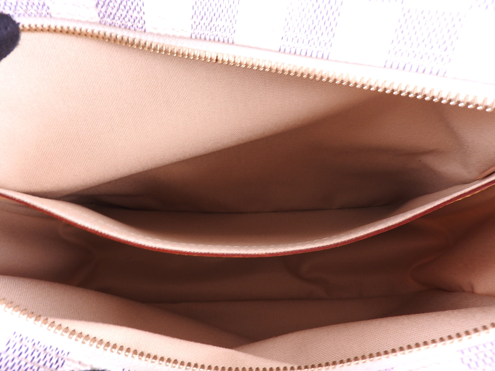 | Exterior | Damier Azur Canvas: Barely used feeling. Rarely used. Good condition. Leather: Barely used feeling. Rarely used. A few slight scratches and stains. |
