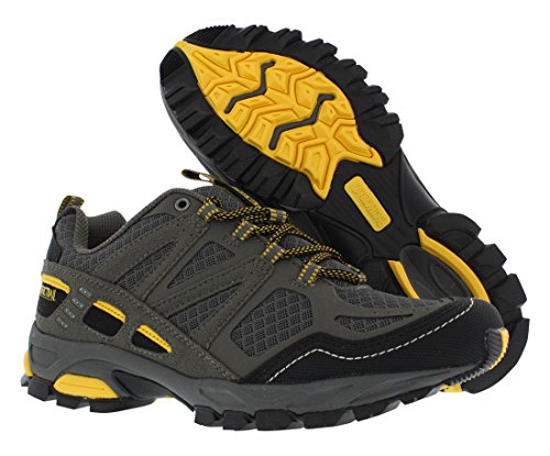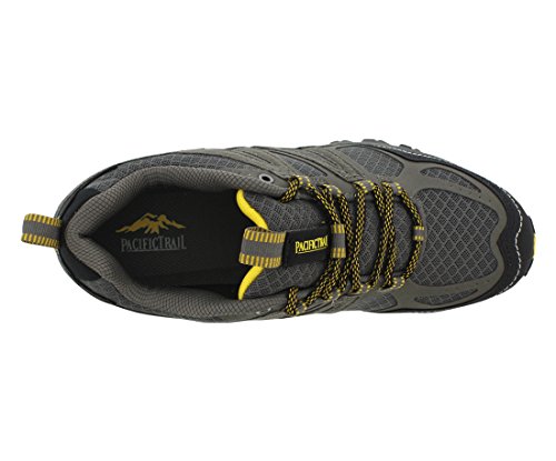 Studio : Pacific Trail Publisher : Pacific Trail Binding : Apparel Product Description You will love your TIOGA hiking shoes from Pacific Trail. This pair of shoes features mesh upper with suede overlays; abrasion-resistant synthetic toe overlay for durability; ghillie lacing; padded collar and tongue; breathable mesh lining; removable, cushioned insole; EVA midsole for cushioning; durable rubber outsole. 0