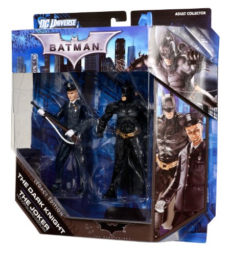 -. Binding : Toy -. Brand : Mattel -. EAN : 0746775034191 -. Feature : Celebrating one of the greatest superheroes of all time, Batman / Inspired by the popular Batman films and the Arkam City video games / Collection features different versions of Batman and some of the most legendary villains / Created in 6" scale each figure is highly detailed and articulated for the adult collector in mind / 2-pack includes Batman and Police Honor Guard Joker from the hit film The Dark Knight -. IsAdultProduct : 0 -. Label : Mattel -. Manufacturer : Mattel -. Model : W1796 -. MPN : W1796 -. PackageQuantity : 1 -. PartNumber : W1796 -. ProductGroup : Toy -. ProductTypeName : TOYS_AND_GAMES -. Publisher : Mattel -. ReleaseDate : 2011-09-01 -. SKU : 5464 -. Studio : Mattel -. Title : Batman Legacy The Dark Knight Batman And Police Honor Guard Joker Collector Figure 2-Pack -. UPC : 746775034191 -. Warranty : 1 year warranty against manufacturer defects