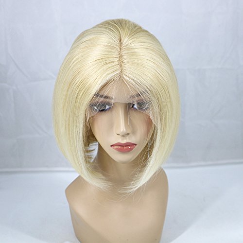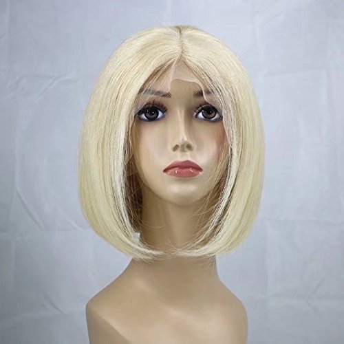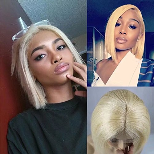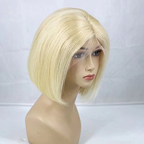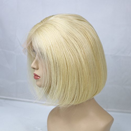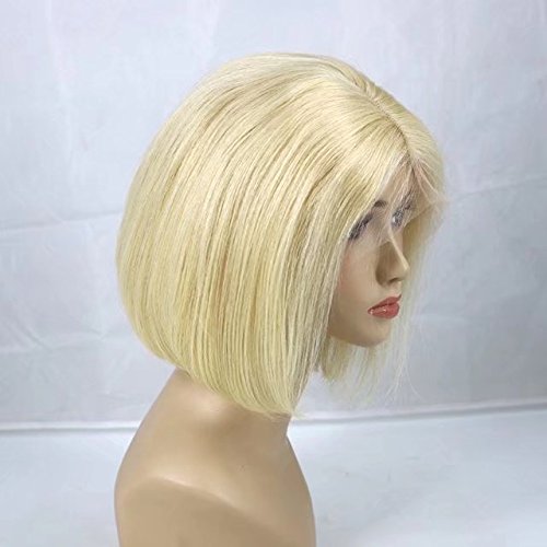 Zhangxiuzhu Hair Short Bob Straight Wig Human Hair #613 Blonde Color 8" Short Brazilian Hair Glueless Full Lace Wigs with Baby Hair Natural Hairline Glueless...