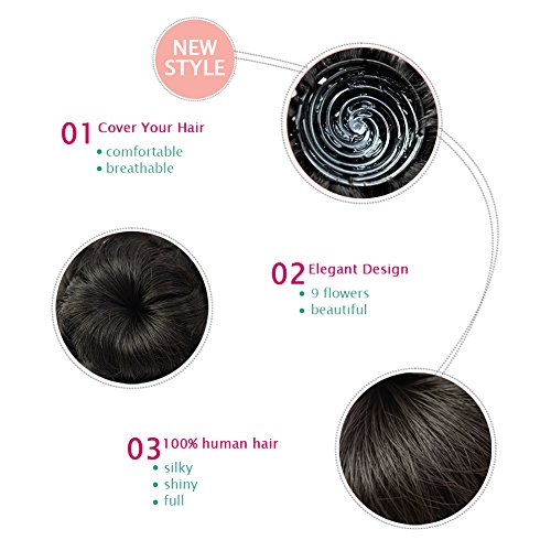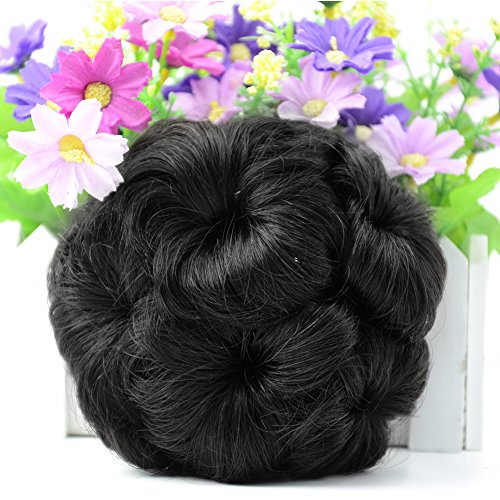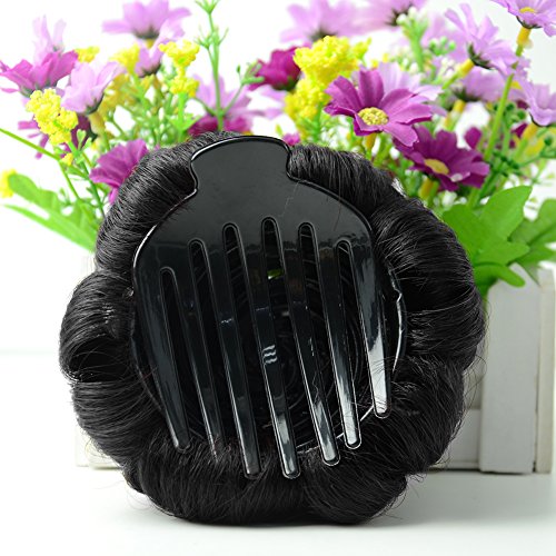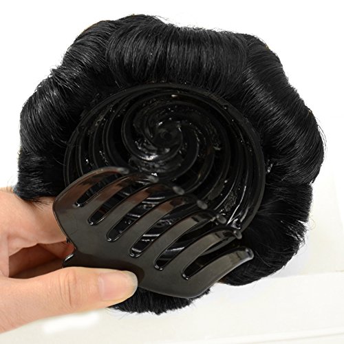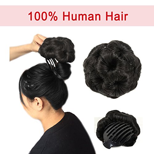 Beauty Angelbella Real Hair Bun Extensions Up Do Donut Chignon Clip in Plastic Comb Elastic Bride Hair Piece (Dark black)