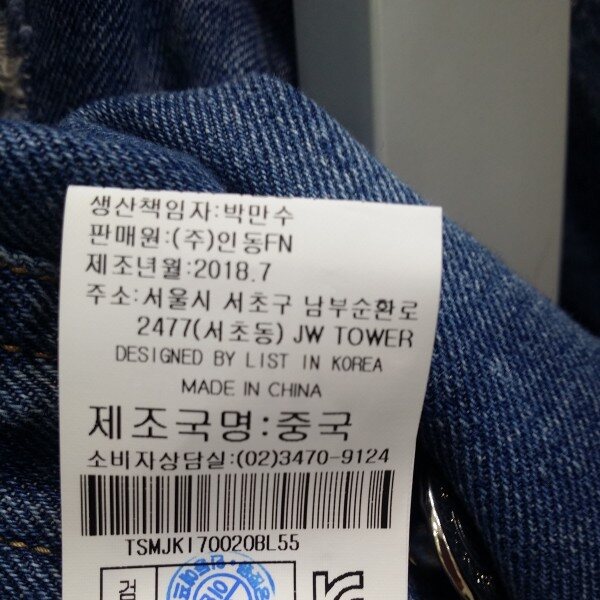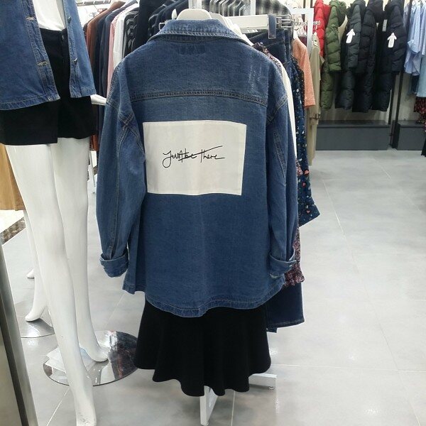 리스트의 2018 F/W가을 신상 데님 청 자켓입니다^^*뒷부분의 유니크한 하얀색 프린트가 인상적인 아이템입니다. 캐쥬얼한 의상 어디에도 잘 어울리기에, 코디하기 좋아 활용도가 높습니다^^ 매우 멋스럽고 세련된 디자인입니다. 이 데님 청자켓은 매장내 실제 착용해 보신 고객님들의 구매율이 가장 높은 제품이기에, 자신있게 적극 추천 합니다^^
