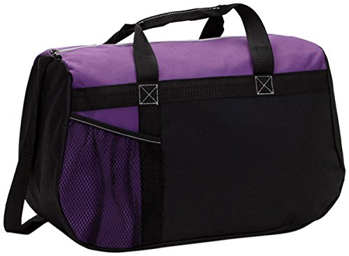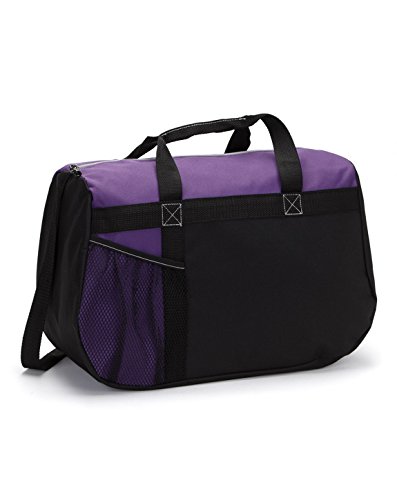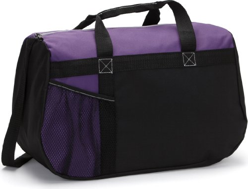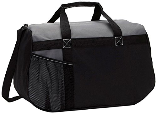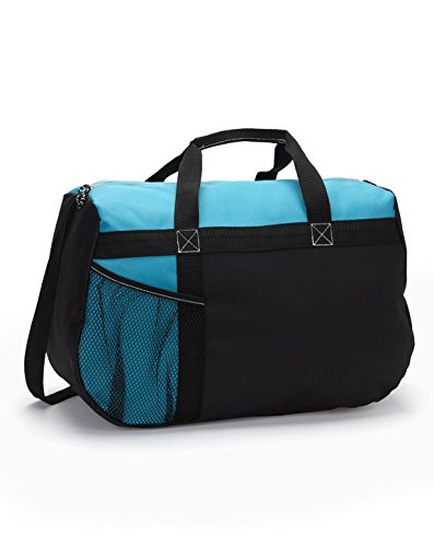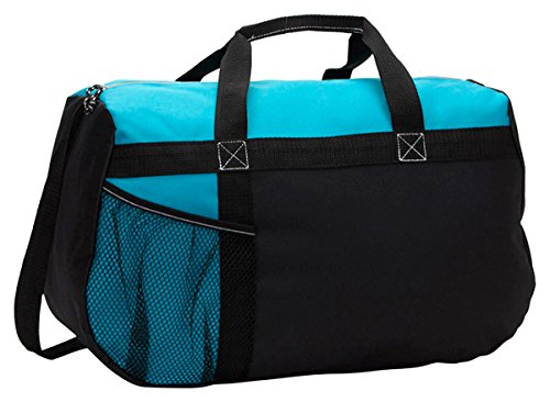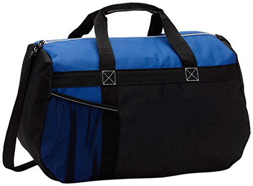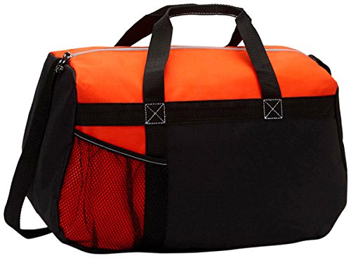 Product Description 600-denier polyester. Large zippered main compartment with cord pull Front mesh water bottle pocket . Shoulder strap and top grab handles Back panel matches primary color 8 W x 5 H approx. Front panel center imprint area . 4 1/2 diameter max. Embroidery area Dimensions (Inches) : 9 W x 11 H x 18 LSize: One size 0