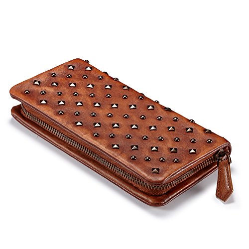 -. Feature : CLASSICAL & FASHIONABLE: This clutch bag goes well with any evening dress. Just image that you are going to a party carrying this clutch bag, you will be in the spotlight! Classical also fashionable! Great gift idea! / RIVET & LEATHER: Our clutch bag is made of premium top layer leather. We put each rivet on the leather manually. The longer you use this clutch bag, the better the leather surface will look. / 100% HAND CRAFTED: This clutch bag is totally made by hand: from material purchase to cutting, sewing, gluing, packing and final quality check, all by hand. Our team is made of 9 experienced craftsmen and all of them have more than 10 years' experience in leather making industry. / DIMENSION & WEIGHT: (L) 7.5in x (H)3.7in x (W) 1in. 0.40 pounds. / HARDWARE & CLOSURE: High quality hardware. Zippered opening closure.