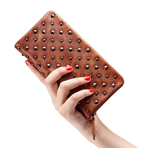 -. Title : CHITUMA Women’s Luxury Rivet Genuine Leather Classical Evening Party Clutch Bag Wallet Handbag
