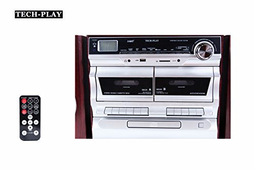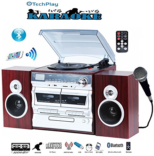 TechPlay Karaoke Enabled, 30W RMS, Retro Classic Turntable, NFC Bluetooth, Double cassette Player/Recorder, CD MP3 player, USB SD ports, AM/FM digital alarm clock and full remote control