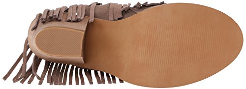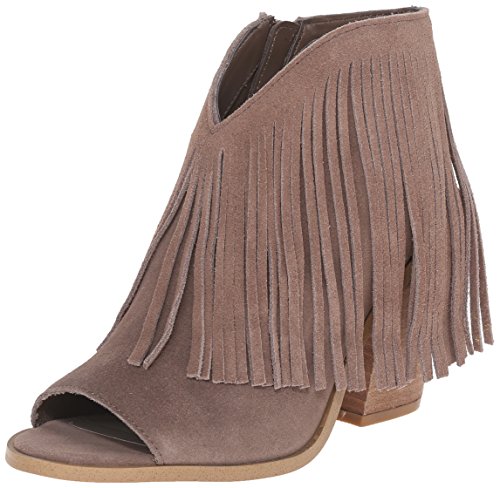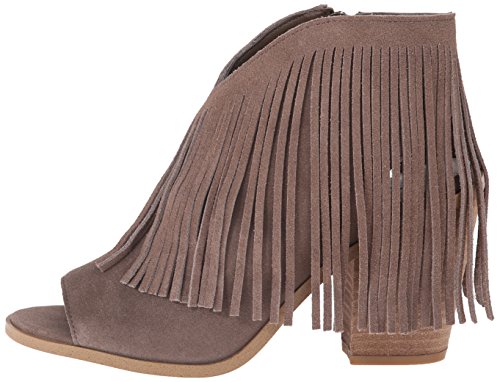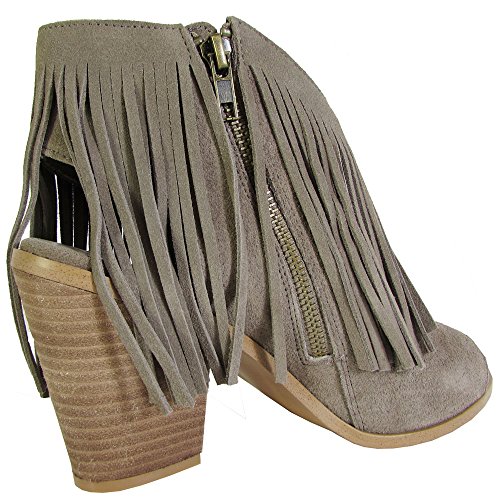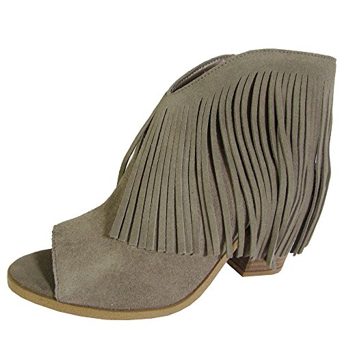 Product DescriptionPeep toe sling back ankle bootie with fringe detail0