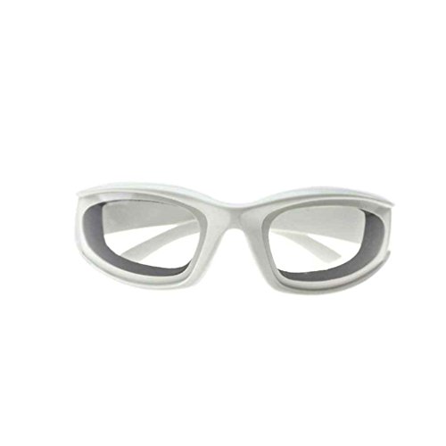 -. Feature : Comfortable foam seal protects eyes from irritating onion vapors / Goggles lenses offer maximum clarity / Unisex design fits most face shapes, but will not fit over glasses / You can say goodbye to tearing, stinging, irritated eyes when chopping, mincing, dicing or slicing onions / Anti-fog lenses offer maximum clarity and eye protection