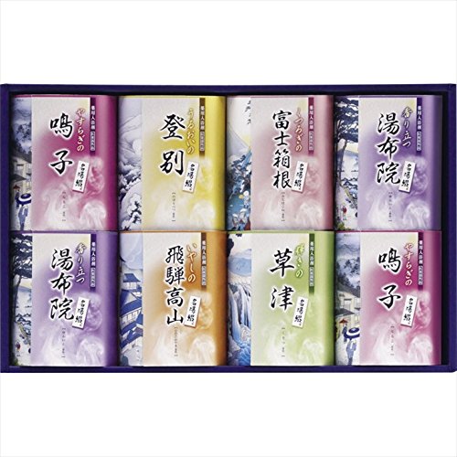 내용:입욕 제:25g×2봉지×4(유후인 나루코×각2)고, 입욕 제:25g×2봉지×4(노보리베츠 후지 하코네 히다 타카야마 쿠사츠×각1)
