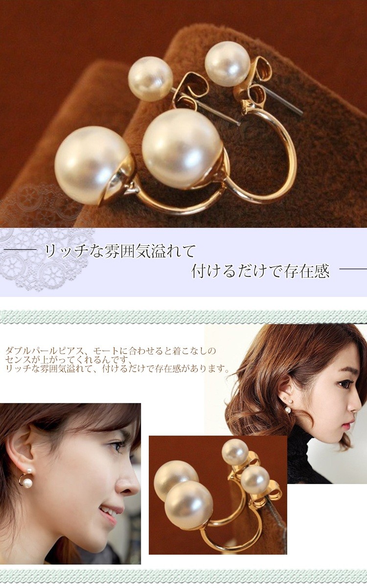 ダブルパールピアス(ゴールド) 『合計4980円税別以上で送料無料』