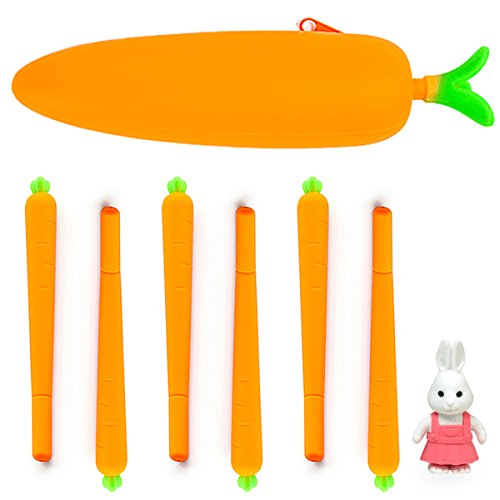 -. Title : DomeStar 8 Pcs Novelty Carrots Pen Silicone Vegetable Pen Set, Creative Ballpoint Writing Pens Ball Pen Cute Pen With Carrot Pencil Case, Rabbit Eraser