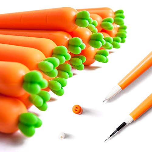 -. Feature : 6 carrot pen (0.38mm, black ink), 1 carrot pencil case, 1 eraser. / Writes 40% longer on average than the leading competitor. / Quick-drying ink resists smearing and won't bleed through paper. / Contoured rubber grip for writing comfort and good look, let the wrting not boring. / What you extra get: a mini box opener, 100% money back guarantee, lifetime worry-free warranty and friendly customer service.