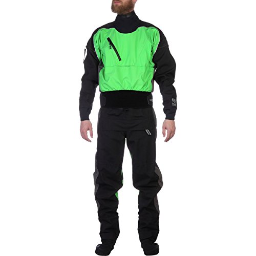 Studio : Kokatat Publisher : Kokatat Product Description The Kokatat Men's Gore-Tex Icon Limited Edition Drysuit should be the first thing you reach for when you're finally packing for your Alaskan kayak/hike escapade. Sixmile Creek drops over 50 feet per mile as it races out of the Chugach Mountains, hammers through three different canyons, has rapids named "Suckhole" and "Jaws," and is nothing but frigid and fresh Alaskan run-off. While the water might be colder than the Yeti's tush, you'll be toasty and dry in this supple and seemingly bomb-proof dryuit. Evolution nylon is just a front for the 3-layer Gore-Tex Pro laminate that keeps you dry, both from the creek water and the anxiety-induced sweat as you hear the roar of the next set of rapids long before you see them. Latex neck and wrist gaskets create watertight seals, and you can trim the neck gasket for a comfortably custom fit. Neoprene neck and wrist over-cuffs ensure water stays away so long as you limit your trimming to the latex (neck) gasket only. Should you end up in the drink and need to crawl out of the creek, Cordura Gore-Tex on the legs, shoulders, and arms keeps you from wrecking your drysuit, while integrated Gore-Tex socks protect all your little piggies from becoming wet toe-sicles. The dual-adjustable overskirt has hook-and-loop compatible neoprene to work with your spray skirt so water stays out of the cockpit. The front relief zipper means you can see a man about a horse without letting your paddling pals see your birthday suit, and the rear-entry design guarantees you'll make a new friend or three. The zippered chest pocket is the perfect place to stash cash, since you know there's a bar within 50 feet of the take-out. 0
