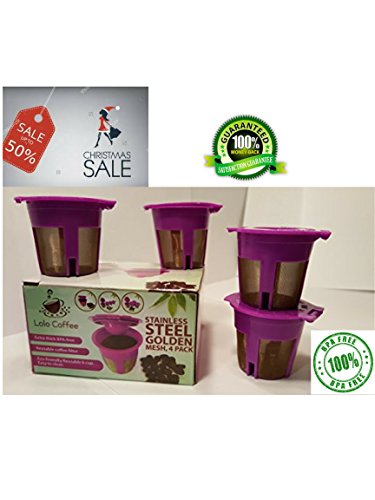 (HOT DEAL) 4 Pack Stainless Steel Reusable K-cup Coffee Filter Set, Best Refillable / Compatible with Keurig 2.0 Systems and Most K-cup Brewers , Made with Stainless Steel Golden Mesh.