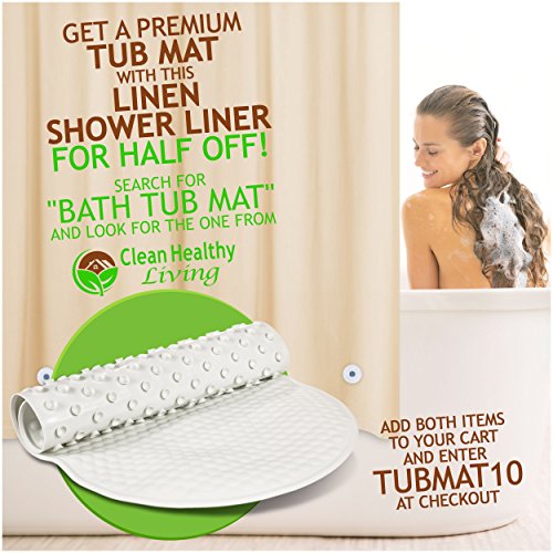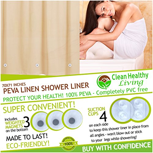 See for yourself. This taupe, mildew-resistant, non-toxic liner is the ideal size & thickness. It has the features you need and hangs beautifully. Order now.