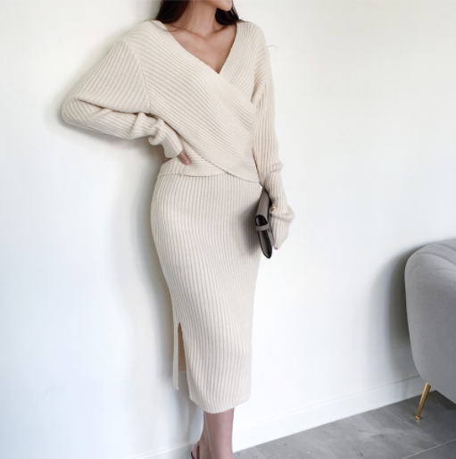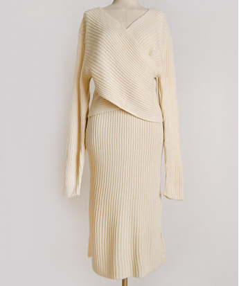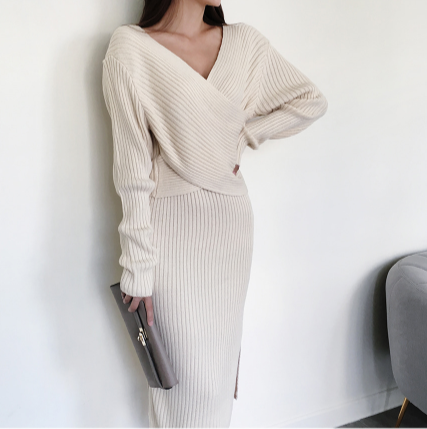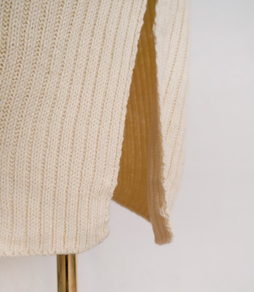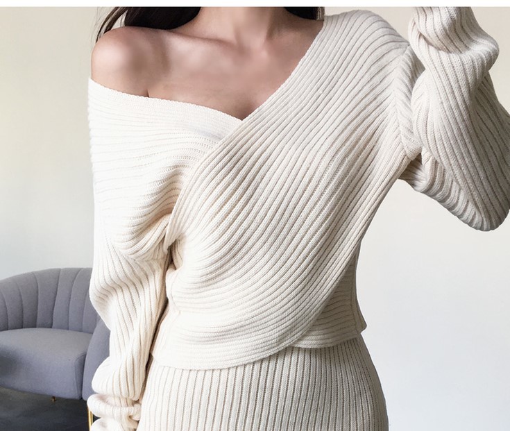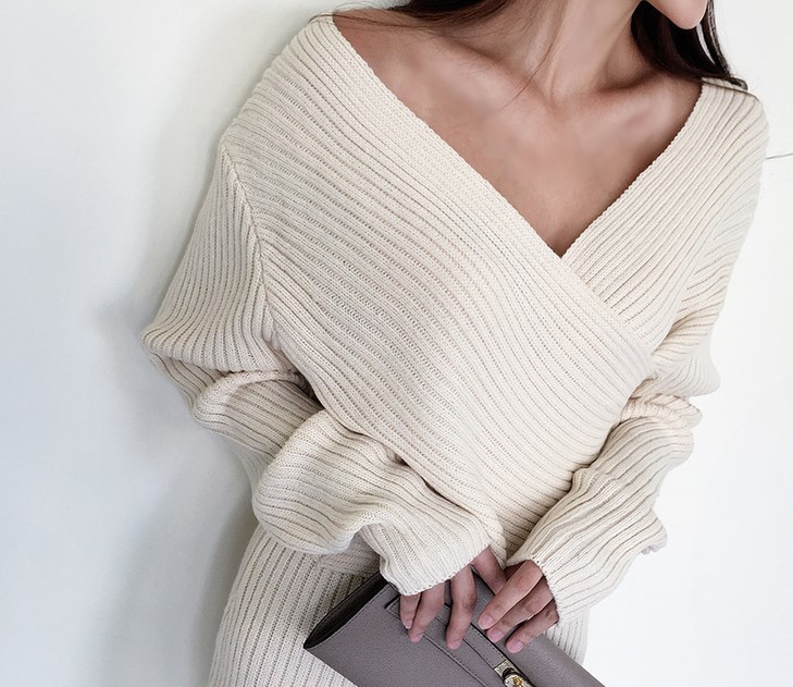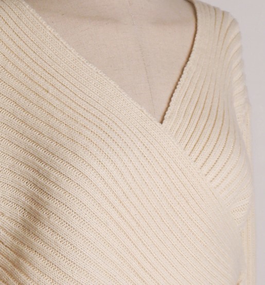 広く開いたVネックはワンオフショルダーとしても着こなせます。