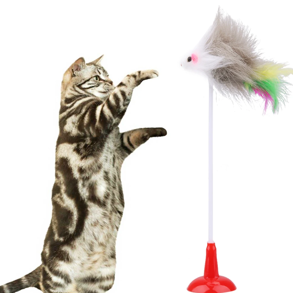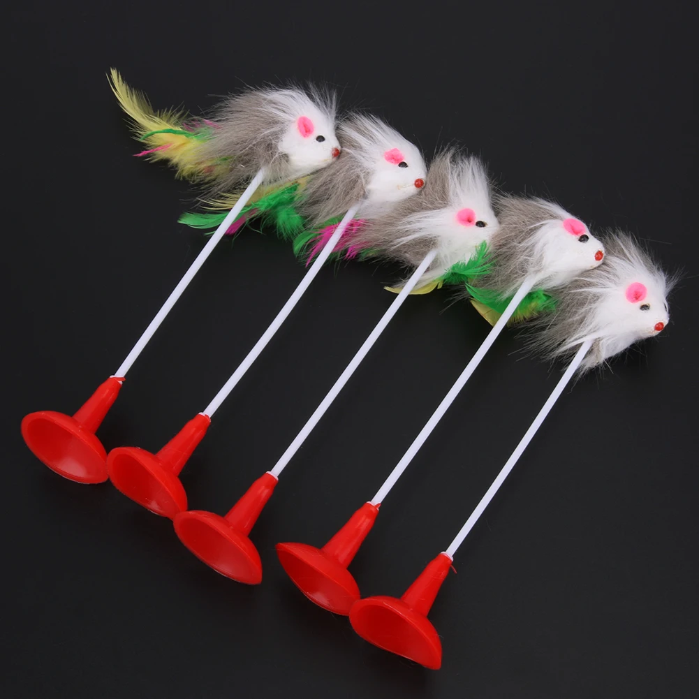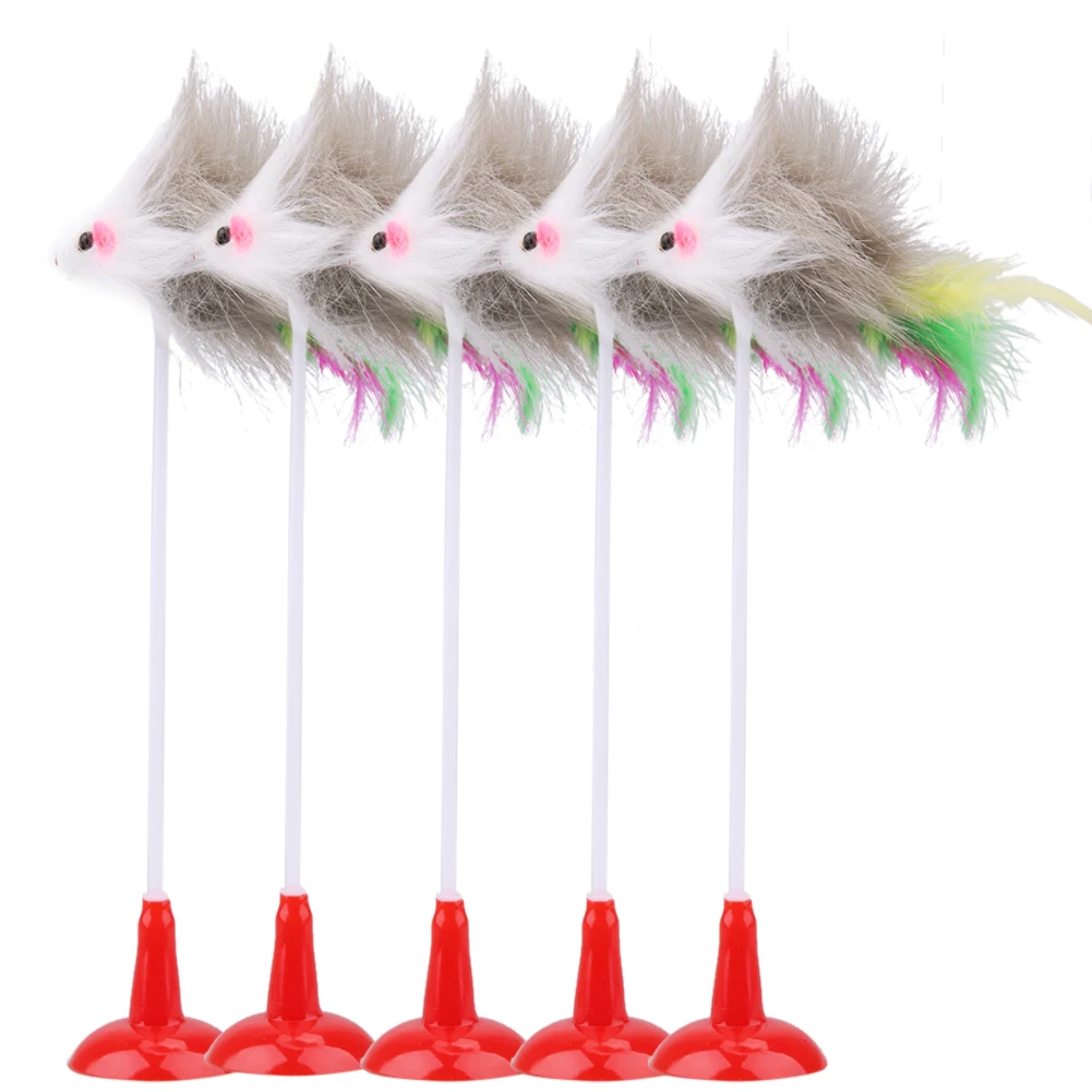 5pcs Funny Pet Cat Toys Feather False Plush Mouse Bottom Sucker Cat Kitten Playing Toys