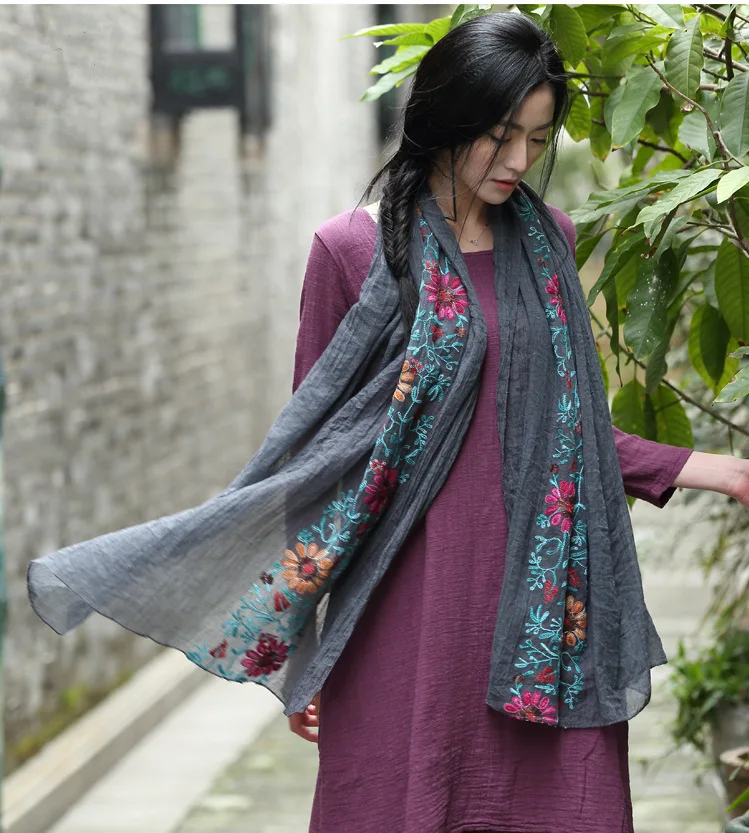 Style: Embroidered Scarves and Shawls Muslim: hijab long scarf: cotton scarf