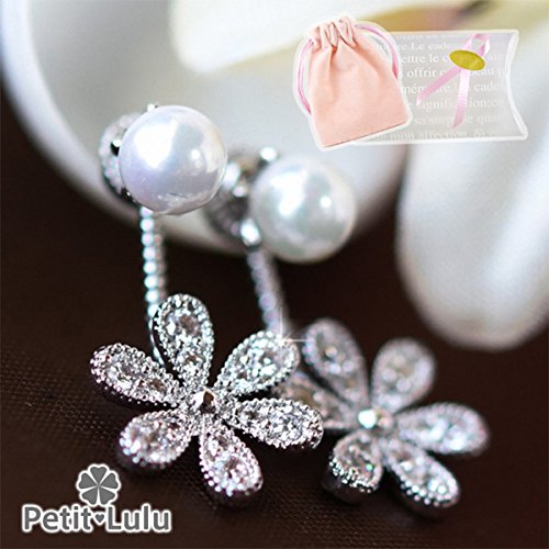-. Title : Petit Lulu ピアス レディース AAA級 キュービックジルコニア CZ 淡水パール 一粒 フワラー 六枚花 バックキャッ フープ