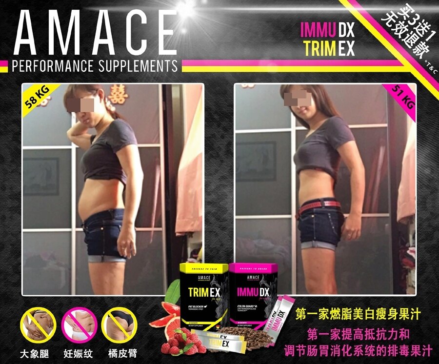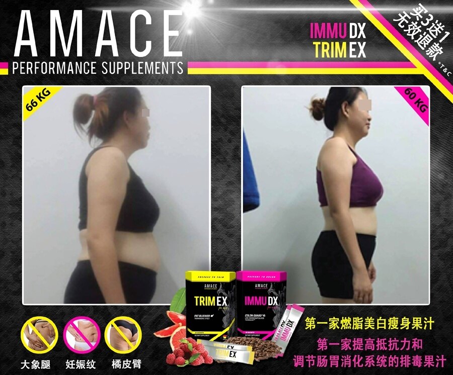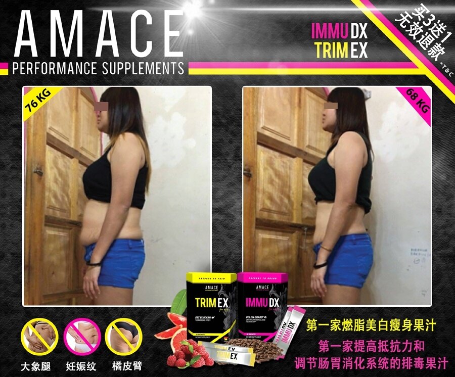 塑身和健康是当前社会的终极目标。采用零麻烦的有效方法,保持或达到理想体型和最终获得良好的健康的身体。什么是零麻烦的方法? TRIM EX就是零麻烦的选择。它的研发是为了以安全,天然的成分,帮助更多的人实现理想生活。这个配方将改善你的体形,并在同一时间改善你的肤质。TRIM EX与市面上的产品的差异就是能为您提供双重的效果。在达成理想的体型和体重以外,它还帮助紧实肌肤,防止瘦身后的肌肤松弛,让你雕塑出光芒。 TRIM EX是一个完整的解决方案,是您的选择,使您能够减磅或帮助你维持目前的理想体形和体重。