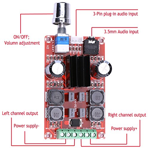With 3.5mm audio input jack and 3P audio input port; please increase the heat sink when meeting with high-voltage power supply, cooling at high power output state