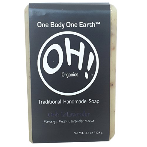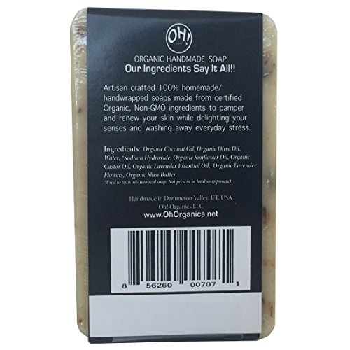 Lavender Organic, All Natural, Handmade Vegan Soap Bar 4.5 Ounce From Oh! Organics With Organic Lavender Flowers And Lavender Essential Oil For The Body, Face, Hands By Women, Men, Teens.