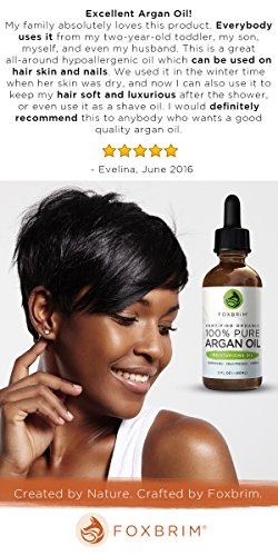 -. Feature : Fresh Argan Oil in its Premium Form - Foxbrim proudly provides you the freshest argan oil available - setting an industry standard for sourcing in extremely small batches. Unrefined, Certified Organic, Cold Pressed and Virgin Argan Oil. Never compromise when selecting the best argan oil available. / Not Oily Like the Alternatives - Unbelievably fresh, light and fast absorbing, our argan oil doesn't aggravate your skin. Other oils and synthetic products can wreak havoc on your skin and body. Foxbrim's argan oil is pure with purpose, ensuring you achieve your desired results without the typical worry. / Unrivaled Natural Moisturizer - You won't find a more complete, enriching and yet delicate moisturizer. Abundant in fatty acids, Vitamin E and antioxidants, there's simply no comparison when it comes to a nutrient-rich natural moisturizer. Foxbrim provides you this proven oil in its premium form. / So Many Uses... to name a few - For your HAIR: Leave-in conditioner. Natural shine. Stop tangles. Calm frizzy ends. Nourish and strengthen hair. For your BODY: Hydrate under-nourished skin. Diminish and eliminate stretch marks. Repair cracked heels. For your FACE: All day moisturizer for even the most sensitive of skin types. Anti-inflammatory to lessen redness and dramatically reduce redness brought on by acne and other skin ailments. Pre-shave oil. Natural lip moisturizer. For your HANDS: End dryness, cracking and peeling. Complete cuticle repair. / Amazing Manufacturer Guarantee - We stand behind our premium oils with an amazing guarantee. If you don't find this to be the absolute best argan oil you've experienced let us know for a full refund. No questions asked.