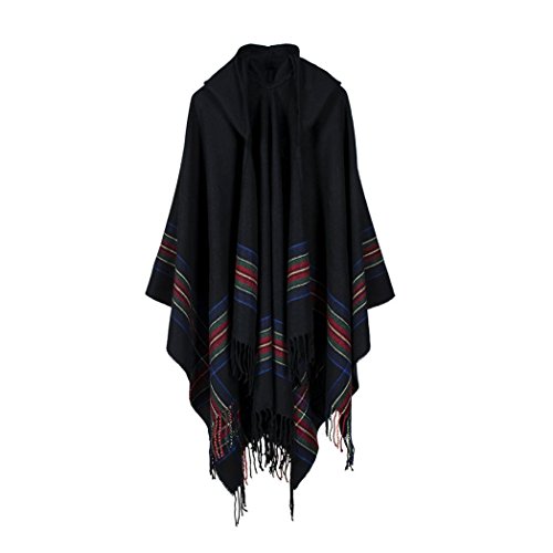 Type: Cloak Gender: Women's Size Type: Regular Material: Acrylic Fibers Garment Care: Hand-Wash Style: Fashion Season: Spring, Autumn, Winter Occasion: Daily Wear, Shopping, Party, Club, Holiday, etc. Features: Colorful Stripes, Tassel Decor, Comfortable, Warm, Hooded