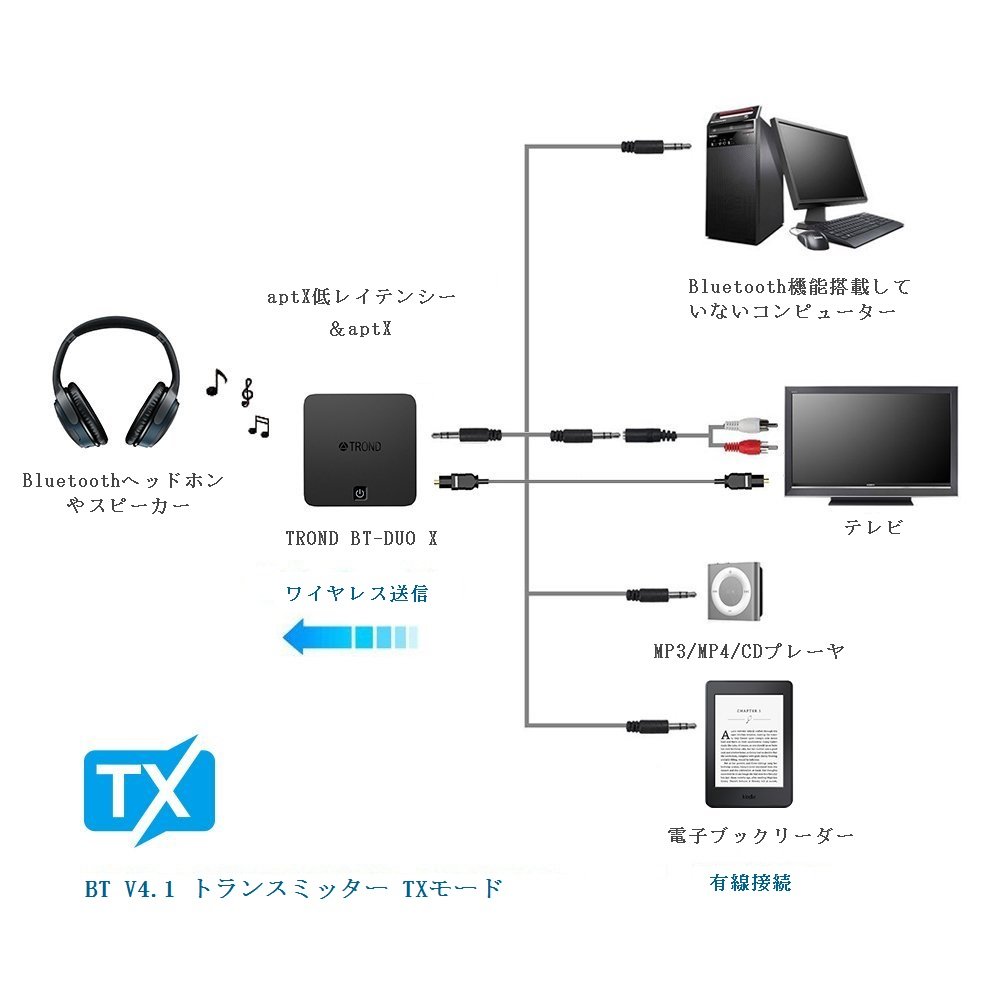 It is a good choice to meet all your needs with the TROND BT-DUO X Bluetooth transmitter / receiver, such as when you want to stream the TV's audio to wireless headphones or speakers or want to use a traditional wired stereo device wirelessly.