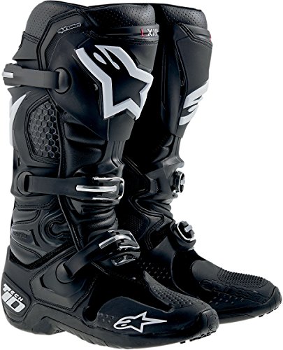Studio : Alpinestars Publisher : Alpinestars Product Description Alpinestars Tech 10 Boots The Alpinestars Tech 10 redefined. Lighter, thinner and more race focused than ever before, the newly revised Tech 10 boot returns to conquer motocross one more time. Directing their energy at weight reduction and improving the buckling system, Alpinestars has made huge strides in the overall feel, comfort and closure. The new hook and lock buckle system is alone worth experiencing and can confidently claim the title as the easiest and more secure system out there. Additionally, a more flexible sole and thinner bootie gives outstanding bike and pedal feel. Already race tested by Ryan Villopoto, Eli Tomac and Justin Barcia, the Tech 10 is fully proven and built to impress. Lightweight upper combines full-grain leather with lightweight microfiber and impact and abrasion resistant TPU shell Innovative, evolutionary TPU shin-plate construction for greater range of fitment features a reinforced Velcro brand closure for comfortable, highly customized closure Shin zone incorporates TPU blade system engineered to prevent frontal hyperextension and provides greater flex control Evolutionary design for lateral flex zone provides front and rear flexion support and helps prevents torsion Medial-facing panel constructed from TPU with rubber insert for maximum grip contact with bike and improved heat and abrasion resistance Contoured TPU calf protector plate offers impact resistance Innovative TPU rear blade system protects heel and features a rear hyperextension guard Extensive TPU protection on toes, foot, heel, ankle, calf and shin with extra hard compounds on the toe-box, heel and Achilles tendon New closure system includes polymer buckles plus aluminum frame with innovative self-aligning, quick release closures for customized secure fitment TPU lower shell is reinforced with metal shank and includes toe reinforcement for impact and abrasion resistance All the buckles are replaceable Soft microfiber gaiter help 0