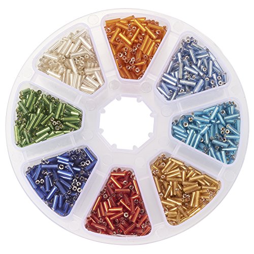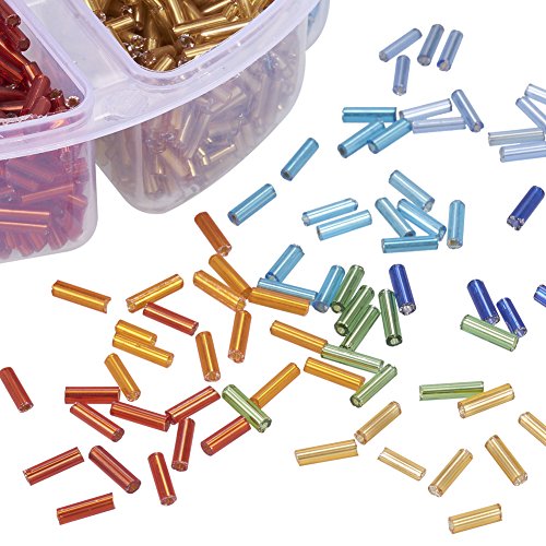 Pandahall 1 Box Mixed Color 6mm Silver Lined Glass Bugle Beads Seed Beads for Jewelry Making; about 103g