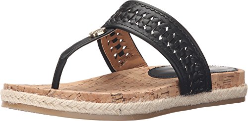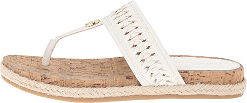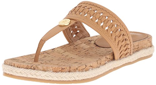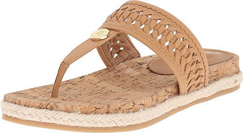 Thong sandal with gold-tone logo medallion and woven-strap upper