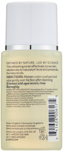 Elemis Rehydrating Ginseng Toner combines toning Korean Ginseng, Quillaja Wood and Sweet Betty Flower. This combination of ingredients works to revitalize and nourish the skin, whilst thoroughly removing any last traces of facial cleanser. This toner is perfect for rebalancing the skin´s natural pH and for rehydrating dry and mature skin.Feature