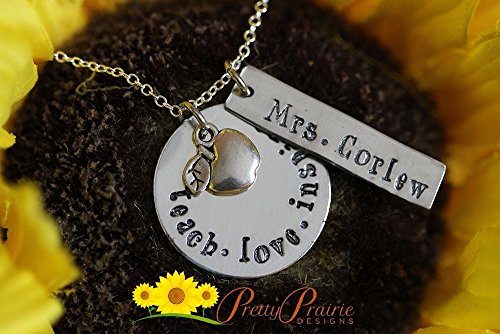 -. Title : Personalized Teacher Necklace - Teacher Jewelry - Teacher Appreciation - Custom Back to School Gift - Daycare Teacher Present from Student - Handstamped Handmade Customized Name
