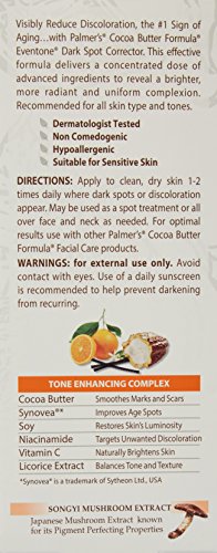 A pigment-perfecting concentrate, Palmer's Cocoa Butter Formula Eventone Dark Spot Corrector delivers a dose of advanced ingredients for targeting discoloration such as age spots, dark spots, post-acne scars and sun damage to even skin tone and unveil a brighter, more luminous complexion.