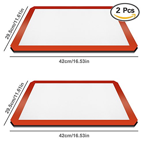 - ABOUT SIZE AND TEMPRETURE-Each baking mat measures approximately 11.6x16.5 inches (LxW),Oven-safe up to 480 degrees F.