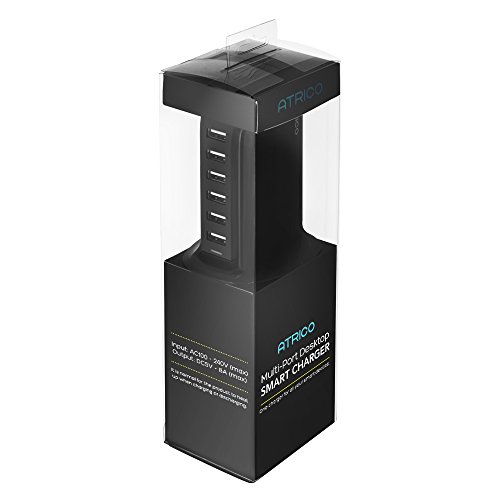 -. Binding : Wireless Phone Accessory -. Brand : Atrico® -. Color : Black -. EAN : 0852661664776 -. Feature : Atrico Multi Port Rapid Smart Charge Tower's unique stylish design simplifies your home or office décor by eliminating your messy clutter of chargers and wires. The charging station combines all your charging needs into one simple neat charging location. The USB hub also has a rubberized bottom in order to ensure stability even when using all 6 USB ports. / The Atrico Charge Tower has the most current "smart" charging ports technology which allow you to efficiently charge various combinations of smartphones and tablets at their optimal output. / The Tower Charger puts out 40 Watts and 8 Amps total. The ports safely & dynamically alter charge output for the most efficient charging times. Also includes active charging LED light so you know when it's in use. / The Atrico Tower Charger is also a great travel charger option as it is capable of handling either 110v or 240v. Despite its powerhouse charging ability it is easily portable due to its small size - 4.1" x 2.2" x 0.9" / The charging station is manufactured with the safest, most advanced, PCBA on the market and the hub uses fireproof composite materials. The Atrico Rapid Charge Tower comes with a 1 Year Limited Warranty. -. Label : Atrico® -. Manufacturer : Atrico® -. Model : D14140007 6 Port Smart USB Charger -. MPN : D14140007 6 Port Smart USB Charger -. PackageQuantity : 1 -. PartNumber : D14140007 6 Port Smart USB Charger -. ProductGroup : Wireless -. ProductTypeName : WIRELESS_ACCESSORY -. Publisher : Atrico® -. Studio : Atrico® -. Title : Atrico Rapid-Charging 6-Port Desktop USB Hub/Charging Station with Smart IC Technology for Apple iOS, Android & Virtually all Other USB Compatible Devices - Black -. UPC : 852661664776