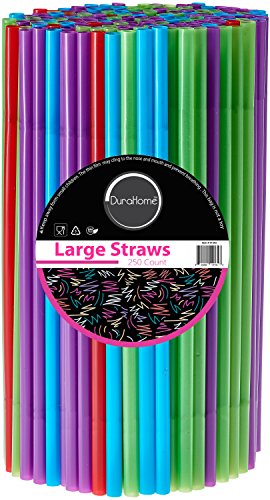 -. Feature : 250 straight large drinking straws. Straw size: 8.25" long, 0.25" Diameter (about 6.4mm wide). Assorted colors / These colorful straws are great for a birthday party, family gathering, event, pool party, picnic, barbecue, summer party and everyday use / Add a pop of color to your everyday life! Use with your morning coffee, protein shake, juice, hot chocolate and more (0.25" wide, NOT recommended for smoothies) / Perfect for kids! Use the straws to encourage healthy beverage drinking or for arts & crafts / Disposable and recyclable, BPA-free plastic construction. Use for hot and cold beverages