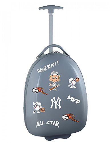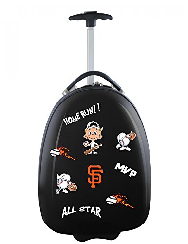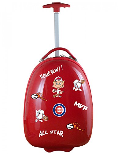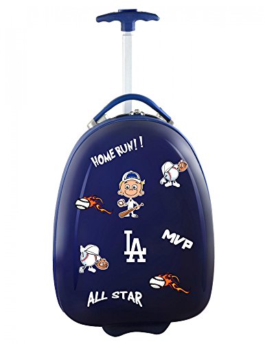Product Description The MLB Kids Pod Luggage has arrived!. Now your kids can travel with their own luggage and customize it with their favorite team with 8 different "fun" stickers. There is nothing like it! Each pod is constructed of 100% ABS material to absorb kid induced impact by flexing under pressure, then popping back to its original shape, eliminating dents and dings. The pod has well constructed inline skate wheels to withstand kid generated force. The interior has two fully lined compartments with cross straps to hold down clothing and a zippered interior compartment. 0