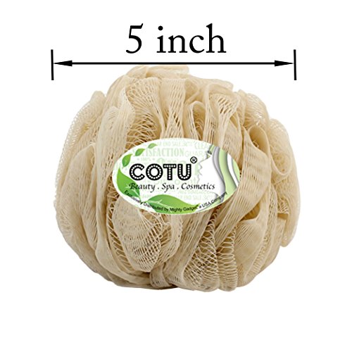 COTU ® Brand Mesh Pouf Bath Sponge works with any shower gels and soaps, and keep your skin healthier with daily sudsing and gentle exfoliating by using a classic mesh sponge. Just rub on your favorite soap or apply bath or shower gel for a luxurious, longer lasting lather. The pouf is approximately 5" in diameter and 50 g in weight with a loop string for hanging in the bathroom. Rinse thoroughly after use and hang to dry. Recommend replacement every 3-4 weeks.