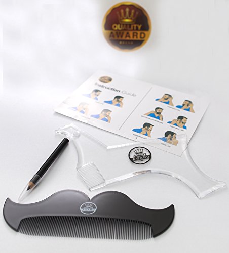 - • Complete Grooming Kit – The best grooming guide for men, you’ll receive a beard shaping tool, beard and mustache comb, barber tracing pencil, and easy-to-follow instruction guide to get your ideal look quickly and consistently.