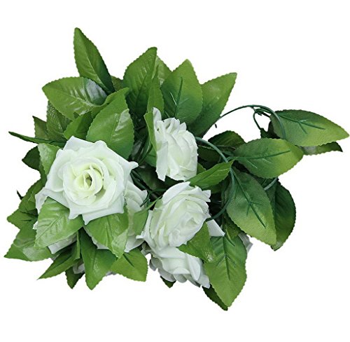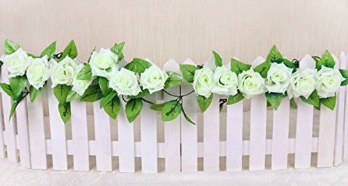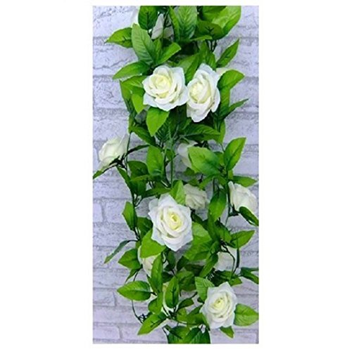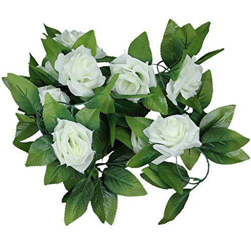 H-YSBER Garden Artificial Flower Rose Vine with Leaves, 2 X 2.4M 9 Head Rose Artificial Garland Silk Flower Green Leaf Vine for Wedding,Garden,Home,Wall,Party Decoration (White)