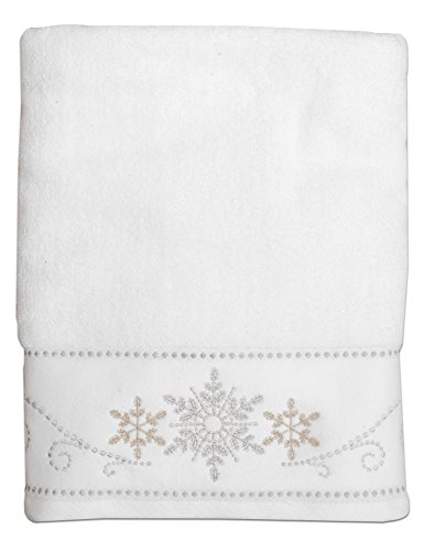 Product Description Add a festive contemporary holiday tree to your bath with thiis holiday bath collection features an embroidered border of gold and silver stylized snowflakes. 0