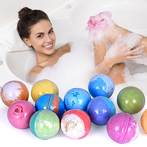- [Healing and Relaxation in the Same Time] Turn bath time into spa time with our huge bath bombs and the extra 6 candles. You can relax and revitalize your body and mind. Get bath to nature with the addition of cocoa butter and essential oils, these bath bombs turn your tub water into a healthy soak that will help relieve aches and pains ,ease muscle discomfort and moisturizing your skin.