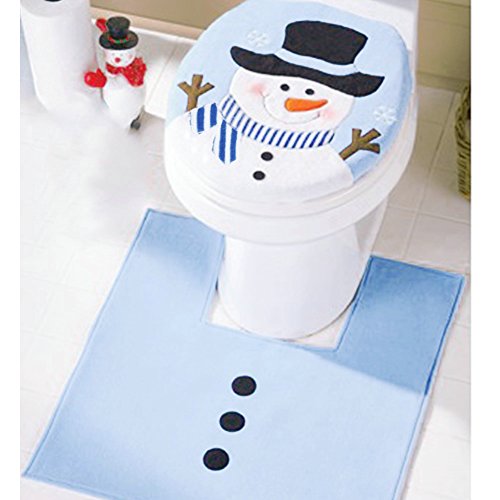 -. Title : Christmas Decorations Snowman Santa Toilet Seat Cover and Rug Set for Bathroom Rug Bathroom Set Lovely Snowman Pattern Set Nonslip Contour Mat Toilet Lid Cover Rug Festival Ornament (2 Piece)blue