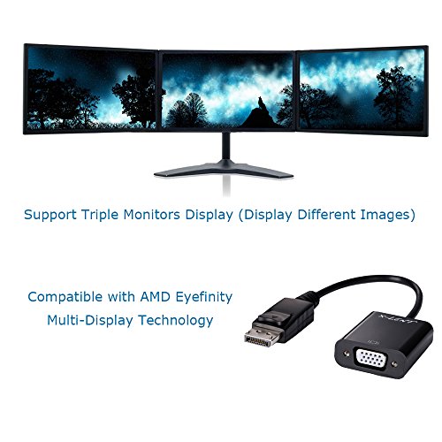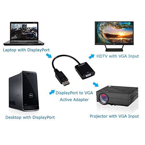 DP to VGA adapter converts digital DisplayPort signal to analog VGA signal, which can transmit high definition video from your computer to a monitor for video streaming or gaming. No external power adapter needed and without software driver installation.
