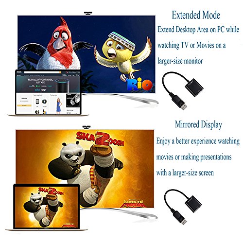 Configure your monitor for an Extended Desktop or Mirrored Display. It allows you to enjoy movies with a larger-size screen or extend Desktop Area on your computer while watching TV on another monitor. Easy to use. Plug and play.