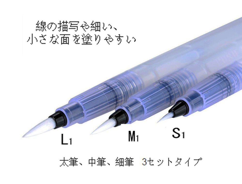 Three set of water pen, with pen brush, using semitransparent barrel, cartridge type.