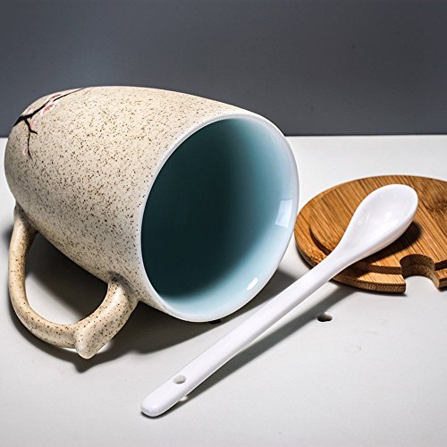 -. Feature : 10.8 Oz Capacity / Made of High Quality Ceramic - Handmade / Dishwasher and Microwave Safe, Suits for Home and Office Use / Beautiful Crafted Plum Flower Pattern - Makes an Ideal Gift for Family, Friends, and Co-workers / Set Includes: 1 Coffee Cup, 1 Lid and 1 Stirring Spoon