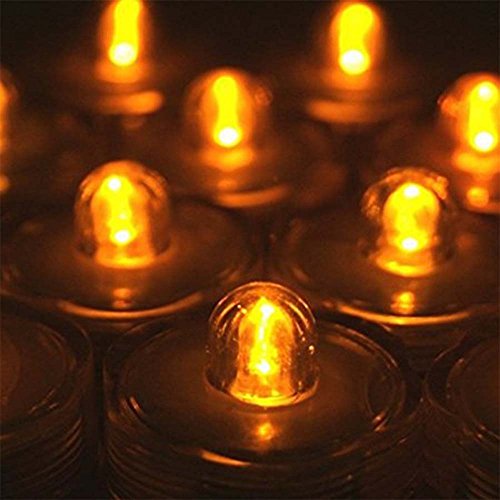 WOVTE LED Submersible Waterproof Tealight Tea Vase Battery Light Tea Light Candles for Wedding Party Xmas Floral Decoration Orange Pack of 12